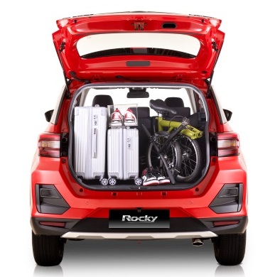 Daihatsu Rocky memiliki bagasi yang luas di kelasnya dan bisa diatur menjadi 2 tingkatdengan kapasitas 303 L dan 369 L, serta fitur pelipatan kursi pada baris kedua hingga hampir setara dengan lantai dapat membantu kelancaran aktivitas bagi penggunanya yang sedang membawa barang berdimensi besar dengan lebih mudah.