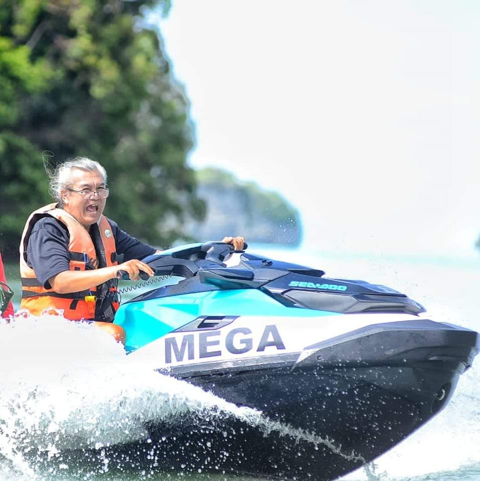 Bermain jetski tak hanya sekadar olahraga air yang menyenangkan. Karena aktivitasnya yang tergolong ekstrim, adrenalin para pengendara juga bisa terpacu. Untuk membuktikannya, sesaat diterima dan berbasabasi dengan Mr Husin pemilik Mega Watersport yang didampingi Mr Fahmi dari Tourism Malaysia Langkawi kami mulai memasang sepatu khusu dan jaket pelampung.